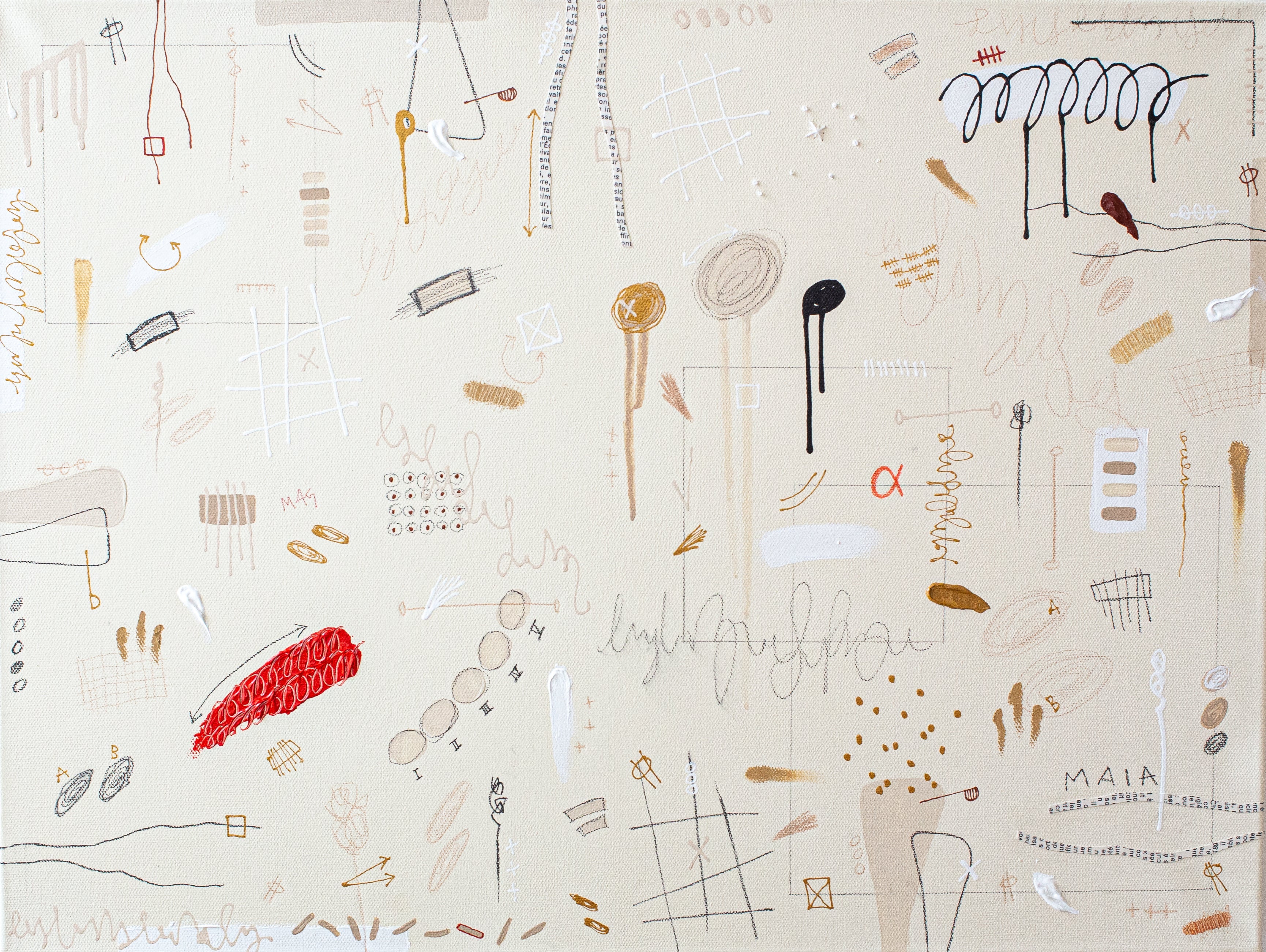 Margot Sinclair is a California-born, Michigan-raised, NYC-based contemporary artist. Her practice involves mixed media across oil, acrylic, graphite, and thread. Through this combination of mediums, Margot is able to create palpable texture in each of her works — while neutral in palette, they are still able to add depth and dimension to a space.