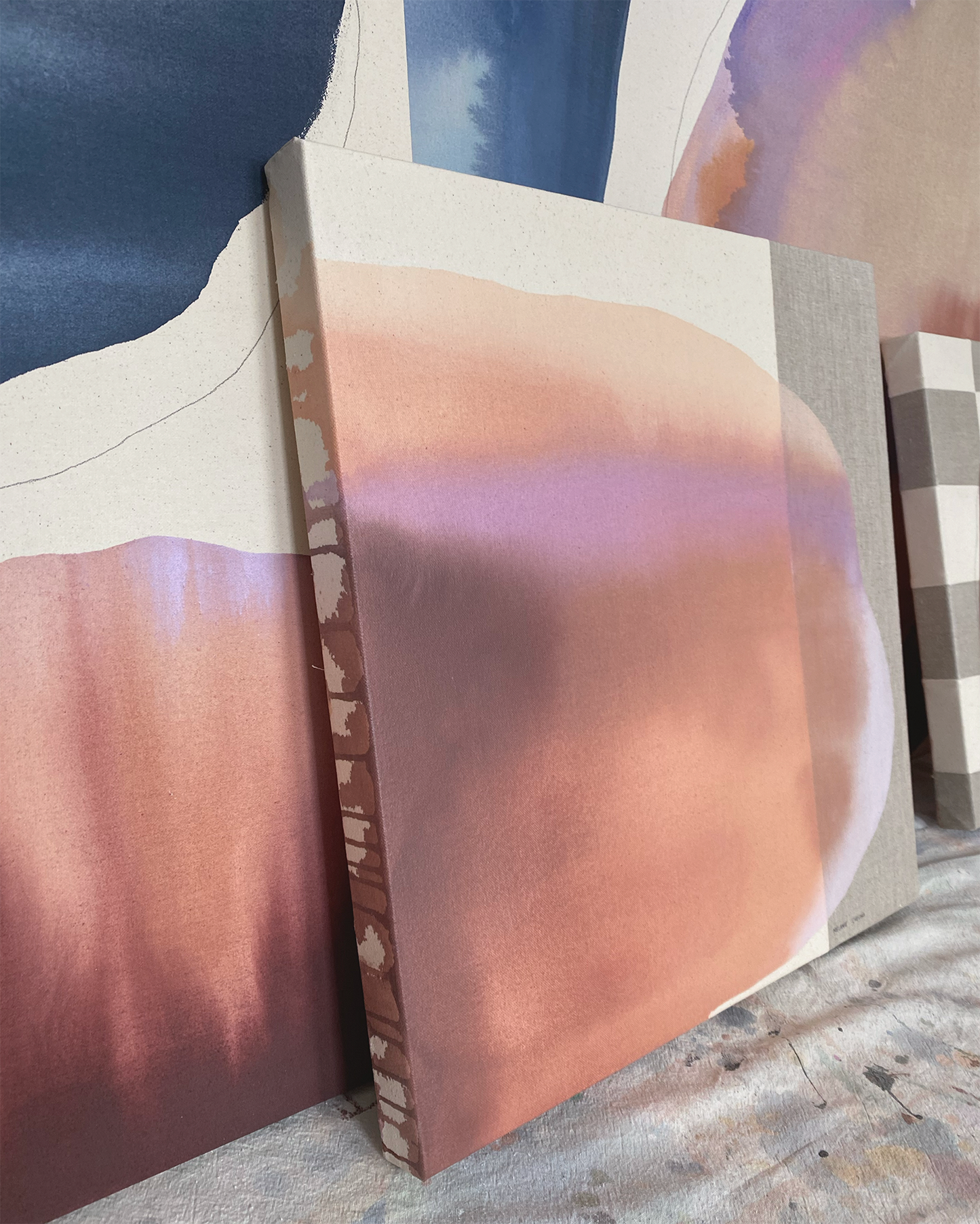 A Toronto native with twelve years spent in Montreal, Melanie’s breadth of experience includes working as a fashion designer for various large scale apparel companies. Her current focus is home textile product design, graphic design, and painting. For Melanie, painting has always felt like one of the purest forms of expression, often used as a tool to slow down. Melanie draws inspiration from unexpected colour combinations and textures from nature co-existing alongside the gritty urban landscapes.