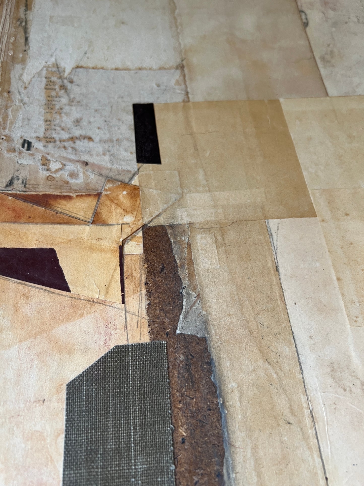 We recommend zooming in to get an idea of how this work comes to life in person. The texture and depth created by the layers of vintage paper offers a stunning semblance of dimension — only able to be fully conveyed through this original work.