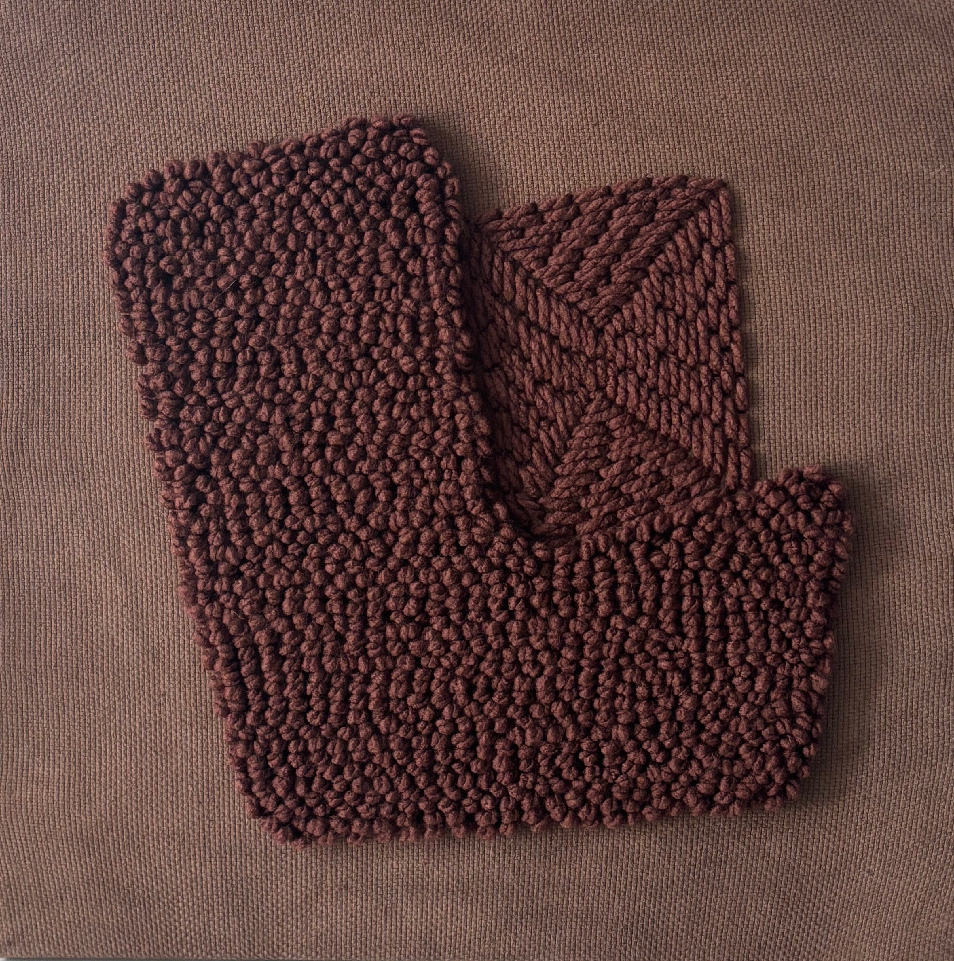 Acrylic and wool yarn on monk cloth (cotton) canvas.