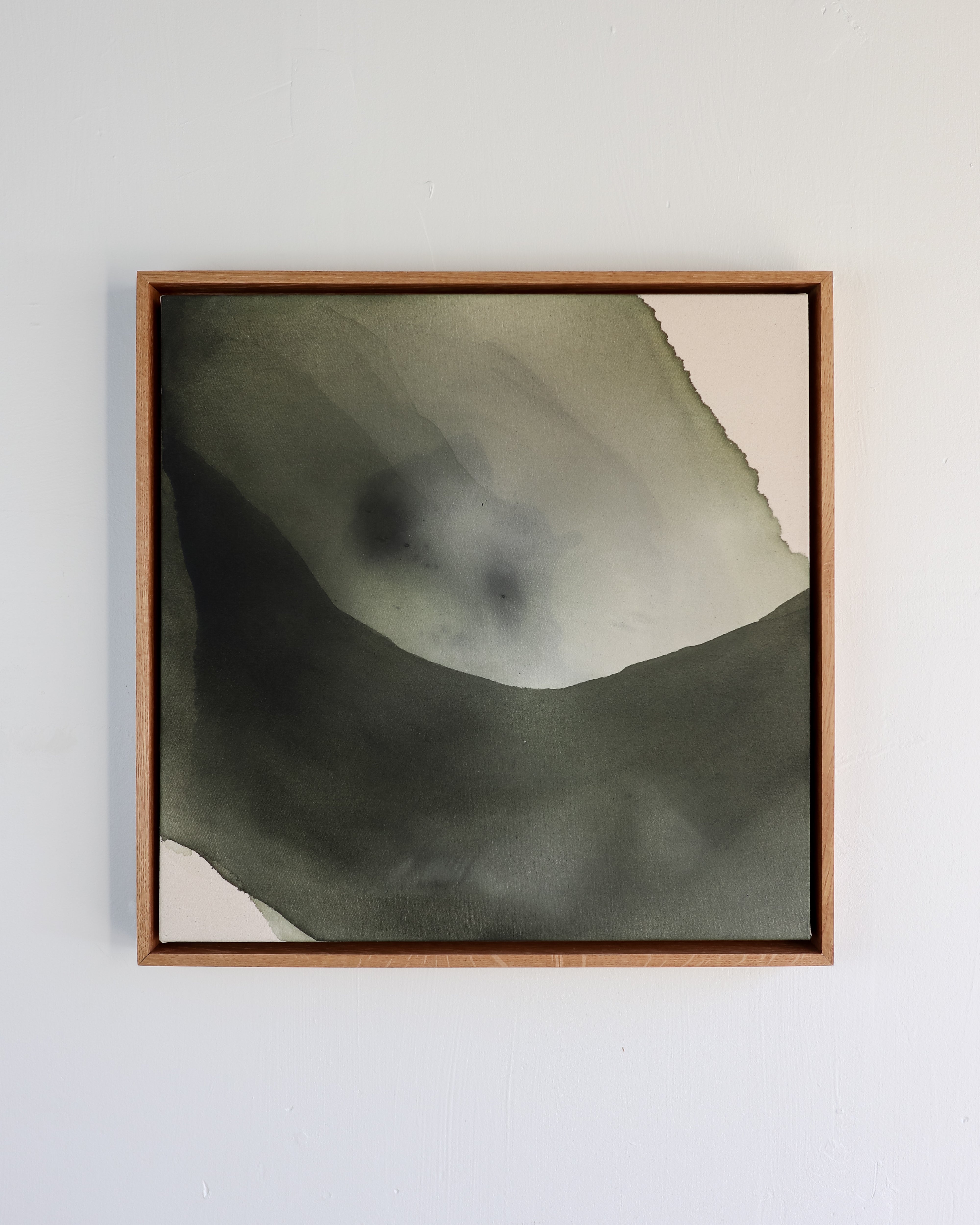 This work comes framed in a custom white oak floater frame.