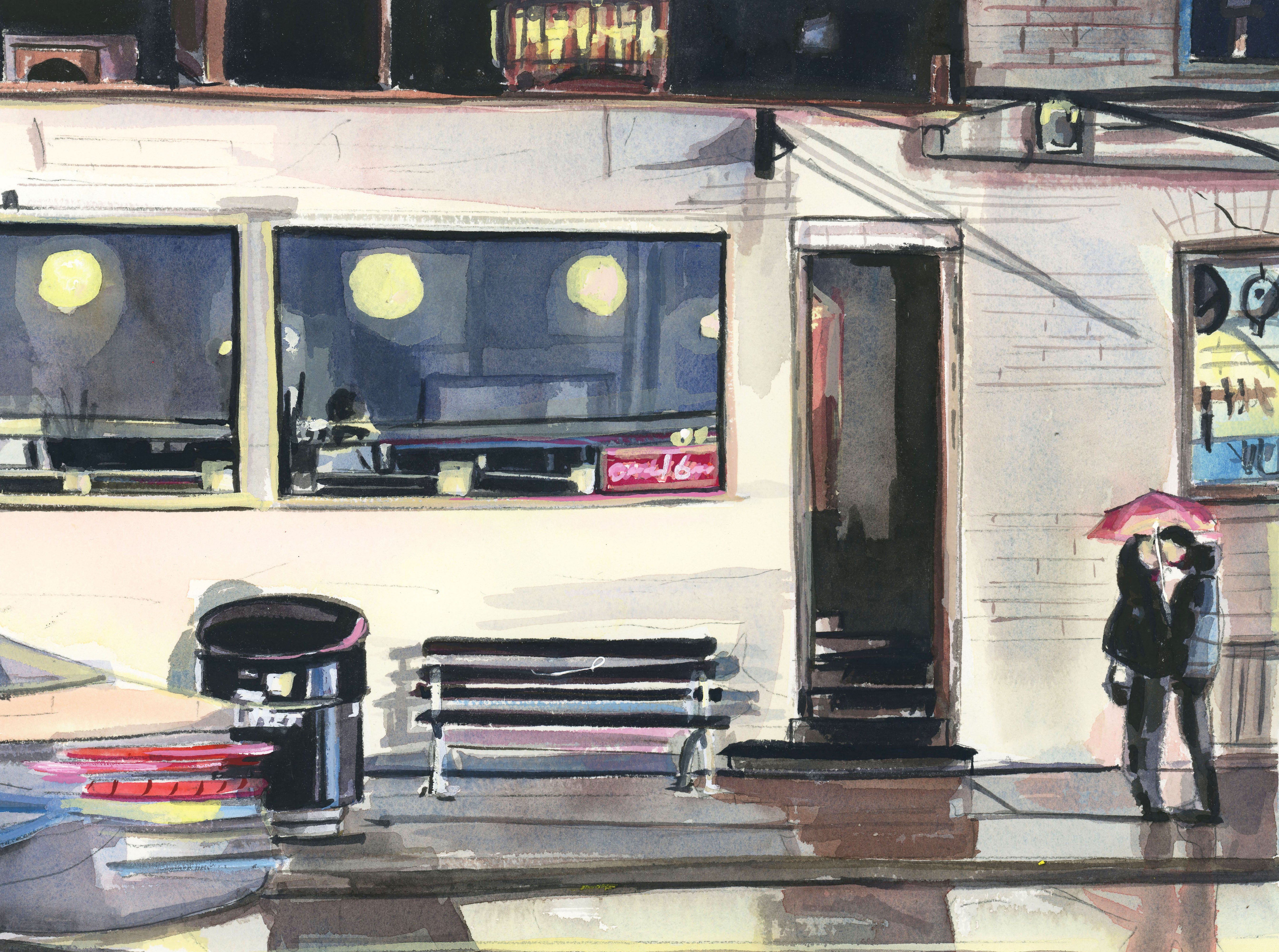 This mini series, Neon Lights, was inspired by a recent trip to New York City. Kelsea found a fixation with light and reflection amongst urban landscapes, prompting her to capture these moments through her practice. She uses the fluid quality of watercolor and gouache paint to evoke the ephemera of fleeting moments —immortalizing the city's vibrancy and around-the-clock pulse.