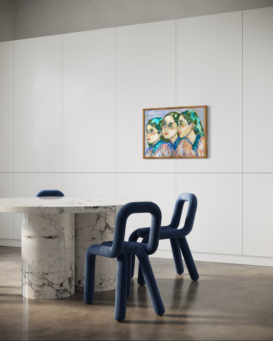 Drea is fascinated by human nature; more specifically, by the interior lives we carry within us. These enigmatic inner landscapes are mostly kept hidden from a passerby, but will sometimes, and often fleetingly, reveal themselves in a passing gesture or look. In her portraits, Drea looks to capture a quality or expression through the use of colour and contour that distills something of the interior life of a person. Whether it's just a mere glimpse of what's going on under the surface, there is always an urgent sense of a passing mood playing out before the viewer.