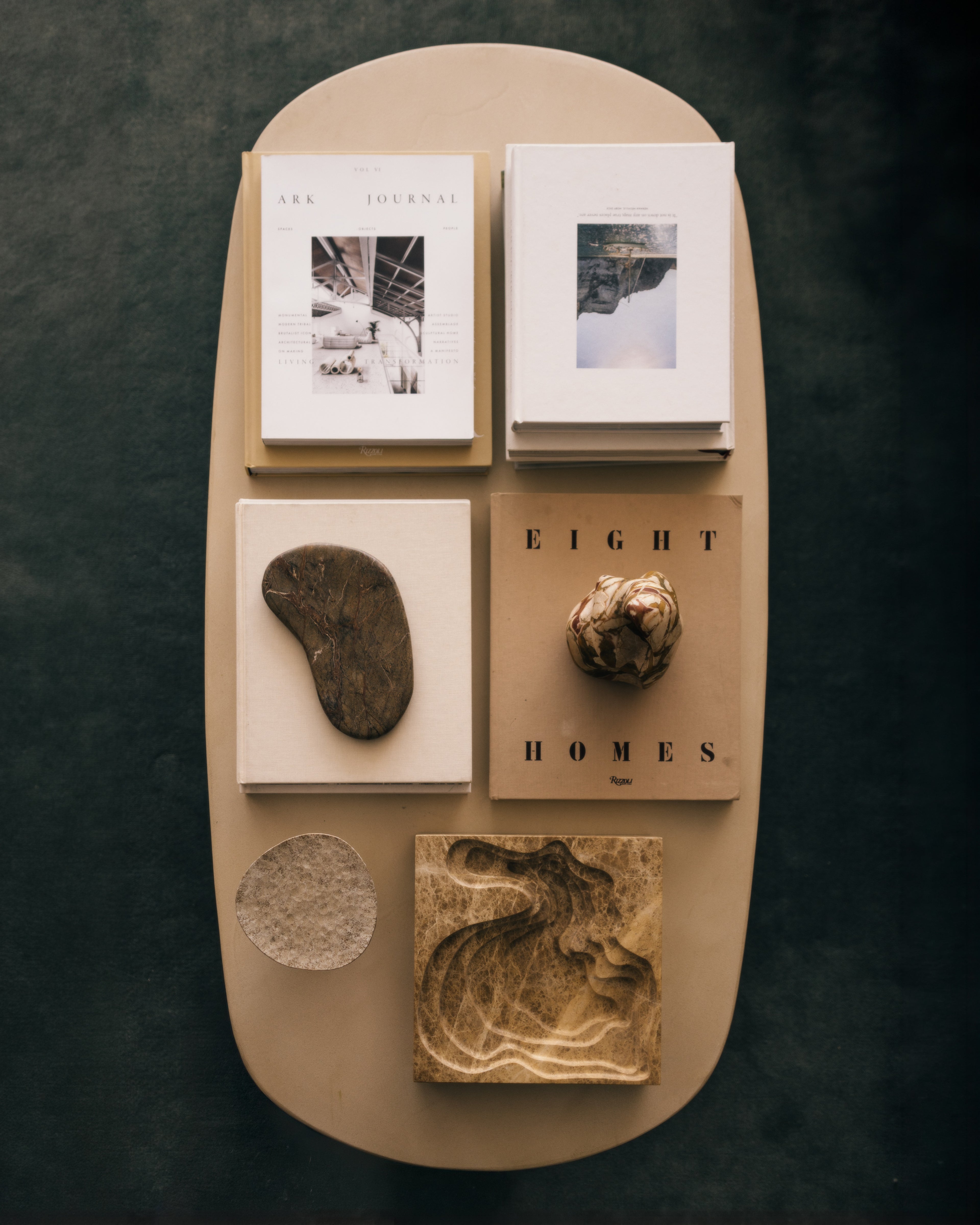 The artwork palette and textures were selected to play off the home’s warm materiality, reinforcing the richness of the finishes and overall interior palette.