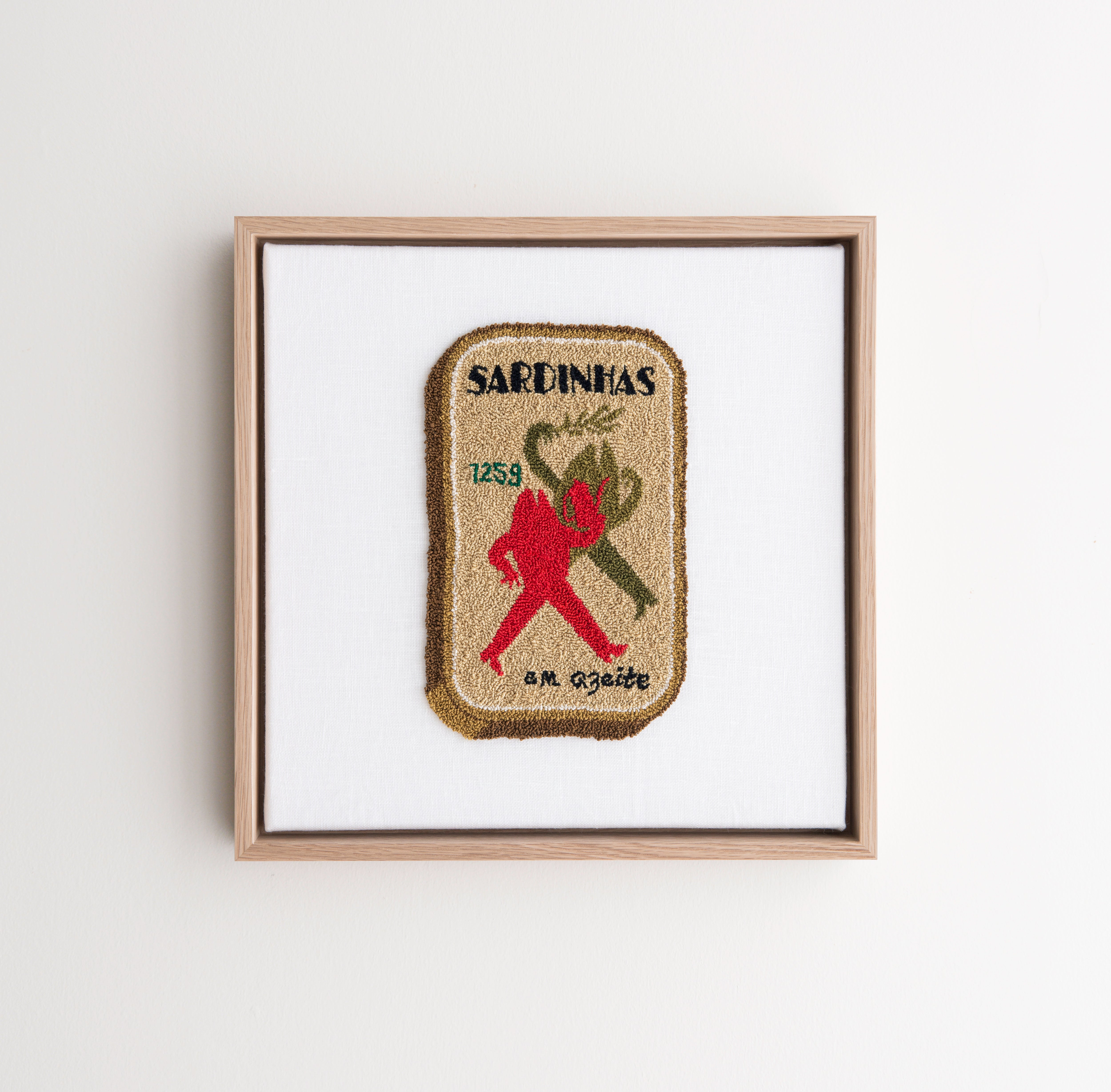 In her newest series, Bebidas e Lanches, Adrienna captures the essence of hot Portuguese afternoons, reflecting on the connection and joy that come from sharing drinks and snacks with others. Adrienna transforms her photographs and souvenirs by recreating them in intricate embroidery. Through her use of vivid-colored threads and different punch-needle techniques, the scenes evoke a dreamlike nostalgia that preserve her snapshots in textile form.