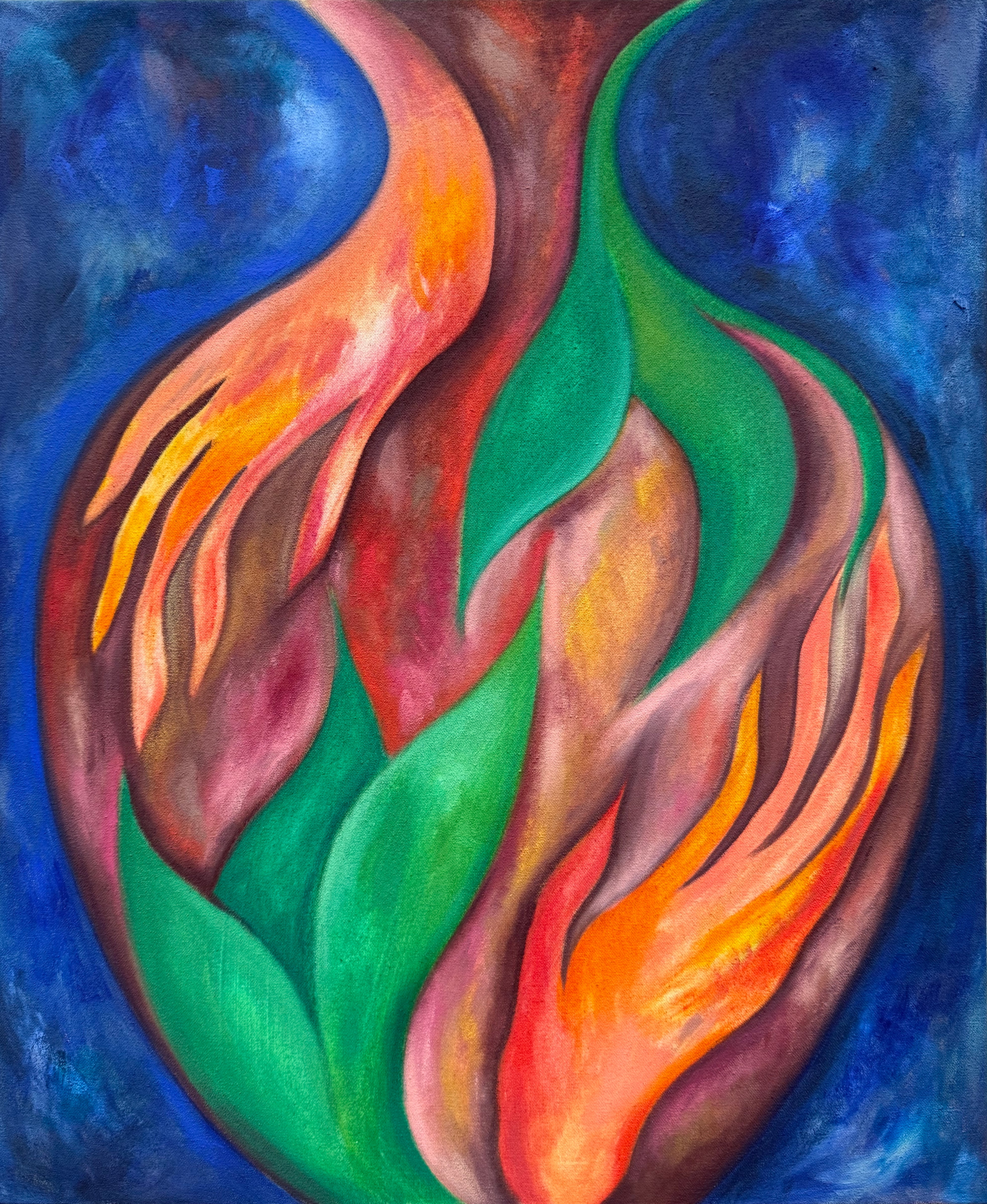 Defined by movement, her abstract practice uses the physicality of freeform mark-making and experiments with the materiality of paint and its transparency (or lack thereof) to articulate layered, multi-faceted compositions. In her abstract figuration, Alex makes manifest compositions she sees in dreams and meditative states onto canvas, and/or depicts archetypal, yet specific, experiences she has in her waking life.