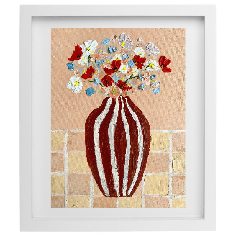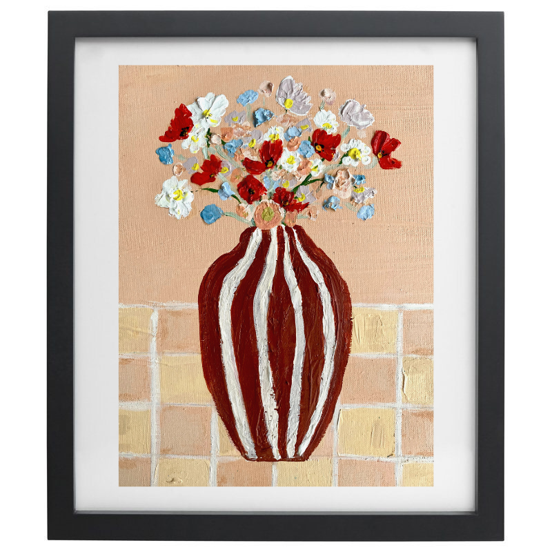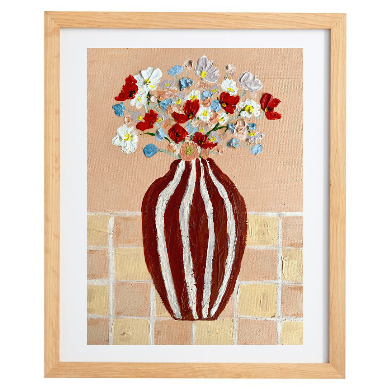 All frames are custom made locally, using high quality wood imported from Italy. Frames are equipped with UV-blocking plexi — a higher quality material than standard glass as it fully protects your artwork, as well as ensures a shatter-proof delivery. Frames are also complete with acid-free backing board and mat for a polished, refined finish.