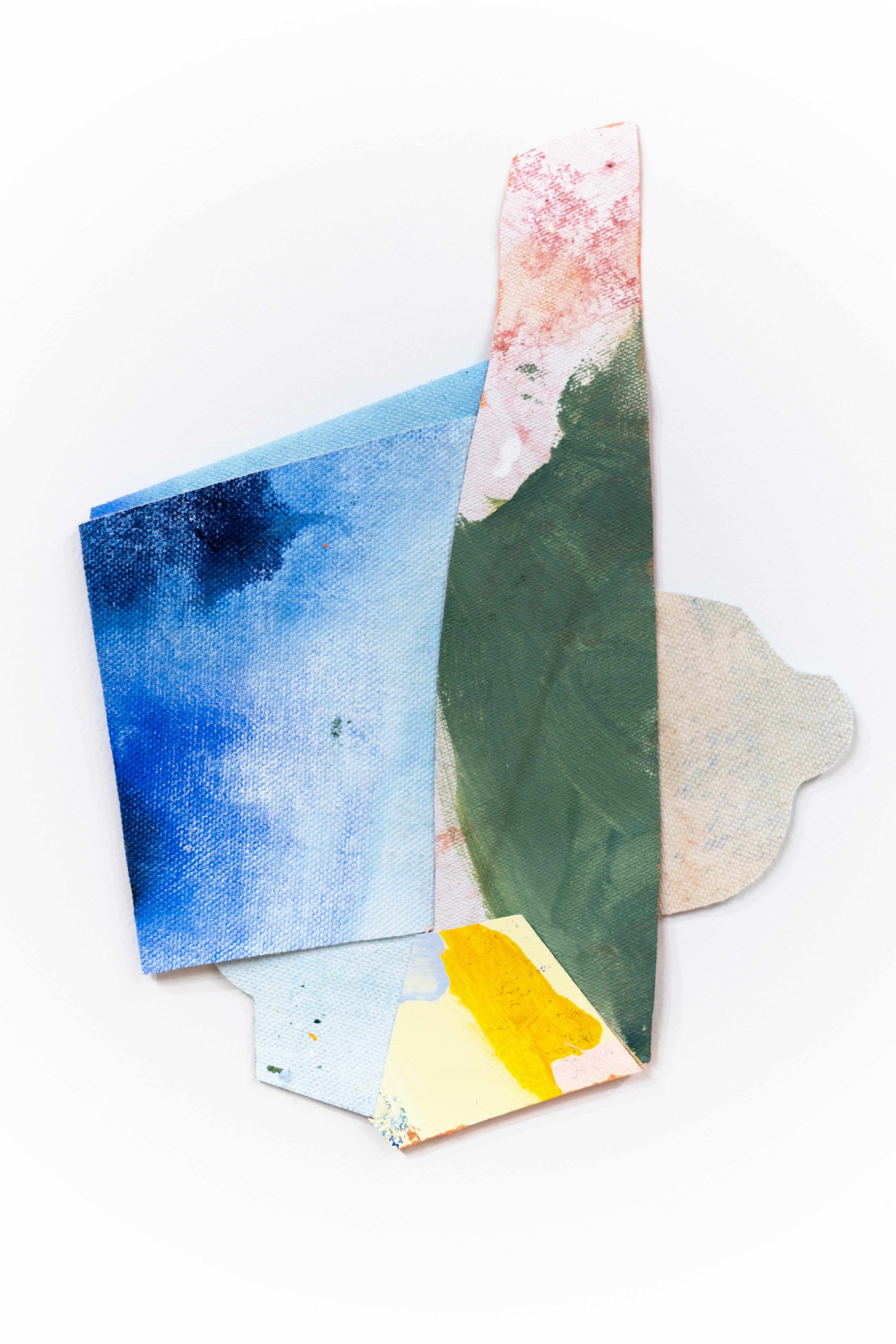 In this series, I emphasize these hidden structures by revealing both the front and back of the canvas while removing stretcher bars altogether. By intuitively bending and folding painted canvas over and around itself, I create works that blur the boundary between painting and sculpture, making multiple perspectives visible at once.